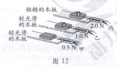(1)小明在“探究滑动摩擦力的大小与哪些因素有关”时,做了如图12所示的三次实验,实验中弹簧测力计应沿木板水平拉着木块做