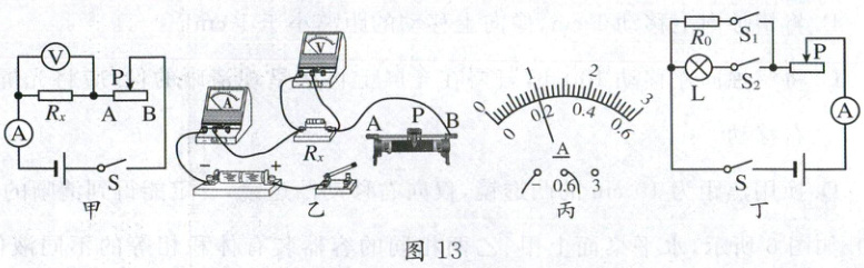 18. (7分)实验小组设计了用“伏安法”测电阻的实验电路如图13甲所示,Rₓ为待测电阻。