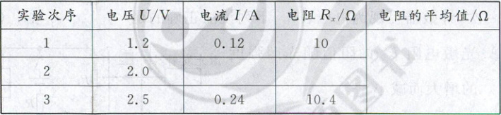 (3)当电压表示数为2.0V时,电流表示数如题图丙所示,图丙所示的电流表选用的量程为0~0.6A,分度值为0.02A,根据指针偏转的格数可得出电流值为0.2A。根据公式$I = \frac{U}{R}$得此次测量的电阻值$R = \frac{U}{I}=\frac{2.0V}{0.2A}=10\Omega$。测量定值电阻的阻值时,应进行多次测量求平均值以减小误差,根据表中数据可以求得三次测量的电阻的平均值为$\frac{10\Omega + 10\Omega + 10.4\Omega}{3}=10.1\Omega$。