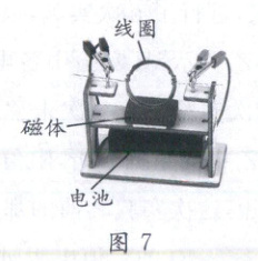 12. (2分)如图7所示,是某同学在科技节上展示的作品结构图。该作品的工作原理是通电线圈在