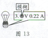 【拓展】当小超同学做完上述实验后又做“测小灯泡的电功率”实验,他将电源(电压为1.5V的整数倍且保持不变)、待测小灯(如图13所示)、滑动变阻器、电流表、开关串联,并将电压表并联入电路。闭合开关,移动变阻器滑片,记录的部分数据及现象见下表。