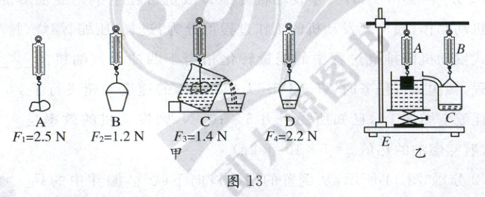 (2)由图13甲可知,石块浸没在水中时,排开水的重力G排=