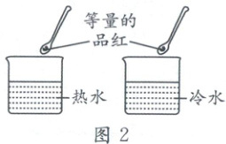 4. 按如图2所示进行实验。当观察到热水大面积变成红色时,冷水中只有品红周围变成红色。对该现象的微观解释合理的是(