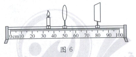 8. 在“探究凸透镜成像的规律”实验中,当蜡烛、焦距为10cm的凸透镜、光屏位于如图6所示位置时,光屏上呈现烛焰清晰的像。下列说法正确的是(