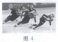 6. 在2025年哈尔滨亚冬会短道速滑女子3000米接力赛中,中国队夺得金牌。如图4是比赛时的场景,下列说法正确的是(
