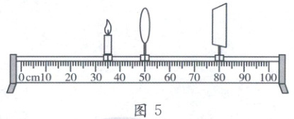 8. 在“探究凸透镜成像的规律”实验中,当蜡烛、凸透镜(焦距10cm)、光屏位于如图5所示位置时,光屏上呈现烛焰清晰的像。下列说法正确的是(