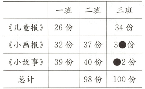 7. 亮亮不小心把老师订报刊的统计表弄脏了,请你先填表再回答问题。