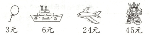 (2)王老师用 100 元买了两个不同的玩具,还剩 30 多元。他买的可能是什么?先算一算,再在图上圈一圈。(7 分)