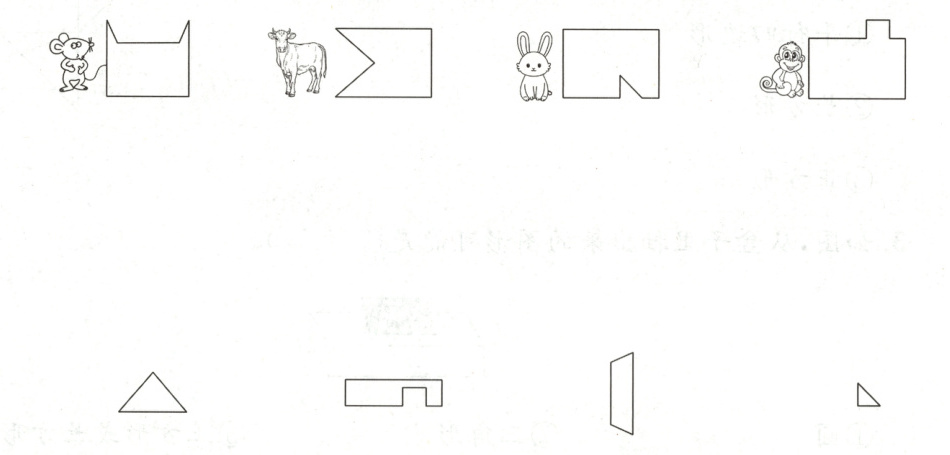 1. 下面的图形是从哪个小动物的图形中剪下来的?请你用线连一连。(8 分)