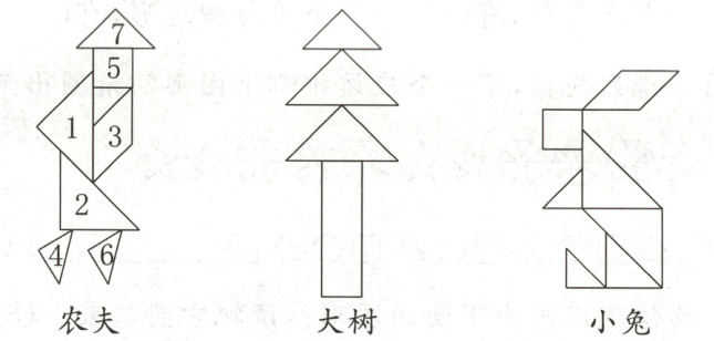 2. 跨学科整合 下面三幅图都是淘淘用七巧板拼成的,描述的是《守株待兔》的故事。(9分)