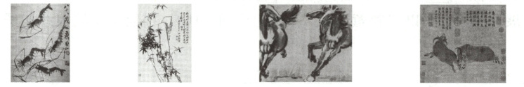 1. 品味栩栩如生的绘画作品,在括号里写出对应的作者(填序号)。