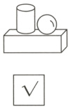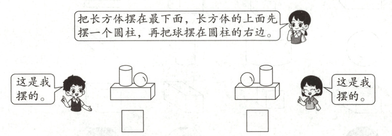 3. 请听指令摆。谁摆得对?在下面的里画“√”。(6分)
