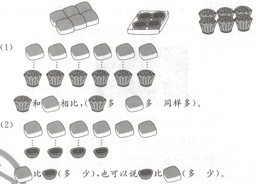 下面是学校准备的一些糕点,数一数,比一比,圈一圈。