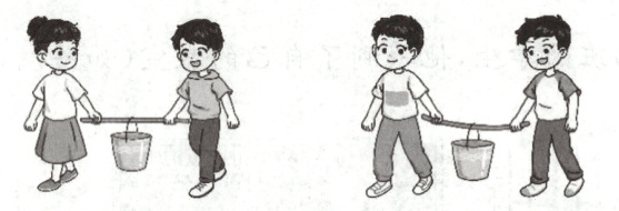 )边的水多,因为(右边的抬水的木棍弯曲了