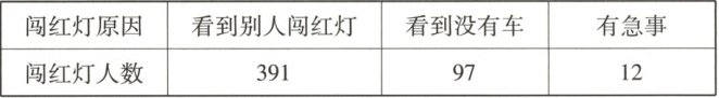 1. 下面是学生志愿者对500份问卷调查表中关于“闯红灯原因”的数据统计结果,请你用简洁的语言表述其中的信息。(不得出现数字)(2分)