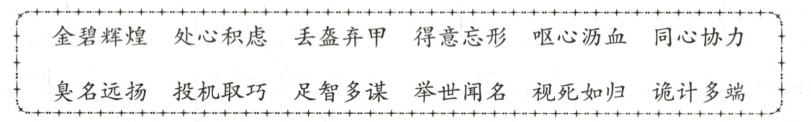 1.金碧辉煌、呕心沥血、同心协力、足智多谋、举世闻名、视死如归