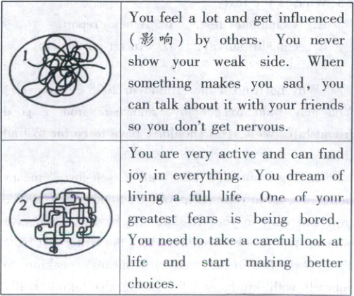 Look at the pictures. Which doodle(涂鸦)do you like best? The answer may say something about your character(性格).