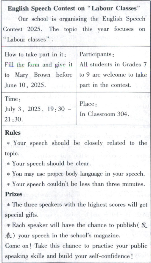 62. 新考法·创新型设问 Helen wants to take part in the speech contest. Which topic might she choose?