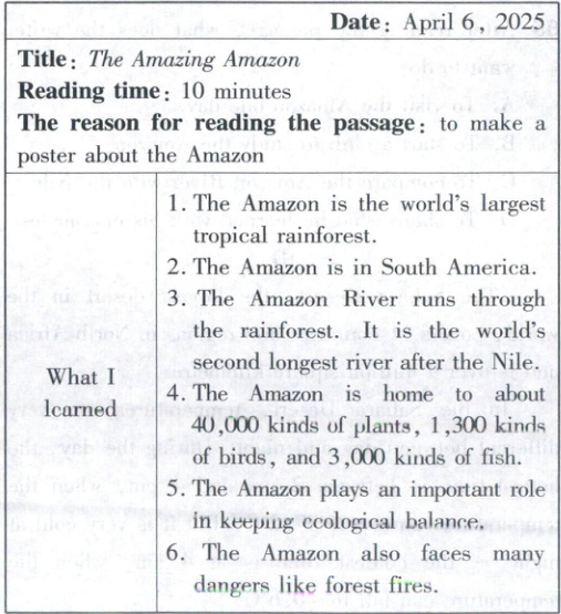 62. Why did the writer read the passage The Amazing Amazon?