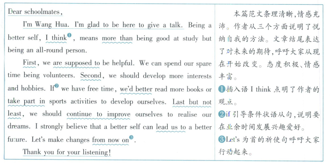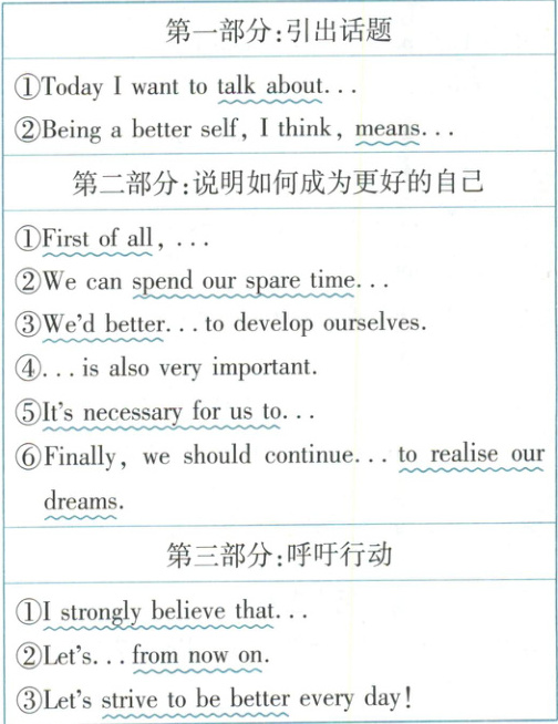 时光荏苒,转眼同学们已步入八年级。新的校园生活让我们学会更好地了解自己、悦纳自己、提升自己,不断成长。我校正在开展主题为“做更好的自己”的英语演讲比赛。假如你是王华,请以此为题写一篇演讲稿,从性格塑造、兴趣爱好、青少年问题、榜样引领等方面,选择其中的 2 - 3 点,谈一谈自己的理解。