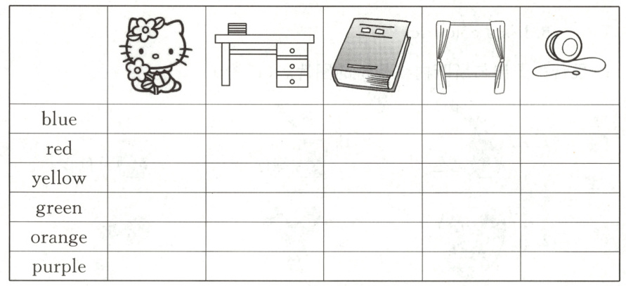 Hello,my name is Jenny. Look! My room! It’s a toy(玩具)cat. It’s red. It’s a desk. It’s yellow. It’s a big book. It’s green. This window(窗户)is purple. And I have(有)a yo - yo. What colour is it? It’s blue and orange.