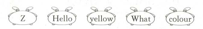 1.Hello 2.What 3.Z 4.colour 5.yellow