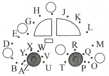 五、在“〇”里补上丢失的字母,并按照字母顺序连线,再看一看是什么图形。(5分)
