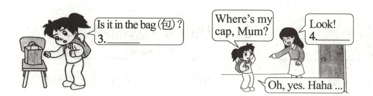 A. Is it in the desk? B. Where is my cap? C. No, it isn't. D. It's in your schoolbag.