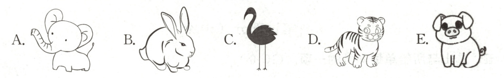 )4. Look at me! I have a very long nose. And I have big ears. Who am I?(