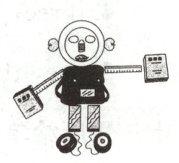 Hello,I'm a robot. My _1_ is Andy. Look at my face. It's a big plate(盘子). Look at my nose. It _2_ an eraser(橡皮). My body is a bag(包). My arms are _3_ and my hands are books. My _4_ are two pencil boxes. I have _5_ ball(球) feet. I'm so cute. Do you like me?