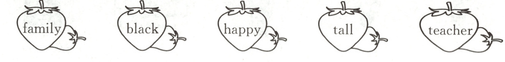 Look! This is my 1.. This is my father. He is 2.. He has two 3. eyes. He is a doctor. This is my mother. She is short. She has black hair. She is a 4.. This is me. I have two black eyes,too. I’m a student. We are a 5. family.