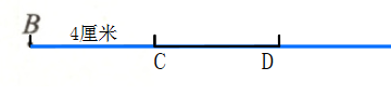 (2) 过点B画一条射线,并在射线上截取一条4厘米长的线段BC,再用圆规在射线上作线段CD,使BC=CD。(4分)