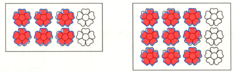 给下面每幅图里的花朵涂上颜色,分别表示出它们的$\frac{3}{4}$。