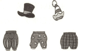 1. 马戏团里的小丑将要表演,想在右图中选一顶帽子和一条裤子,有(