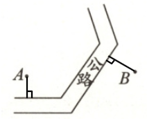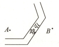 4. 为方便快递派送,$ A $、$ B $ 两点各建了一个快递点,现在要从两个快递点各修一条到公路最近的小路,应该怎么修? 在图上画出来。(4 分)