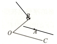 1. 过点 $ B $ 画出 $ OB $ 的垂线,过点 $ A $ 画出 $ OC $ 的平行线。(4 分)