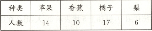 1. 元旦到了,四(1)班同学准备举行庆祝活动,需要购买一些水果。购买之前班长先调查了本班同学最喜欢的水果种类,调查情况如下统计表所示。(15 分)