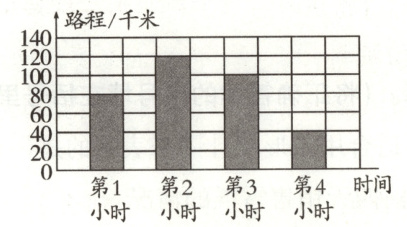 一辆汽车从甲地开往乙地共行了 4 小时,每小时行驶的路程如图所示。