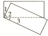5. 如图,把长方形绕着它的一个顶点旋转,已知$\angle 1 = 25^{\circ}$,求$\angle 3$的度数。(5分)