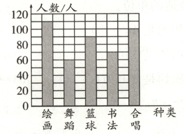 )组。(4分)(3)参加篮球组的人数比参加书法组的多(