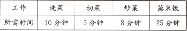 5.妈妈做饭时要做的工作和所需的时间如下表: