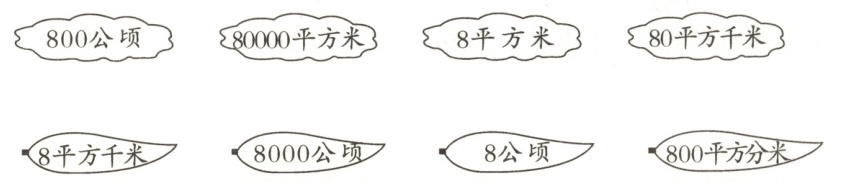 800公顷连8平方千米,80000平方米连8公顷,8平方米连800平方分米,80平方千米连8000公顷。