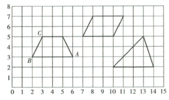2. 计算某梯形面积的算式是$(2 + 4)×2÷2$,根据这个算式在方格图中把以$ A $、$ B $、$ C $为其中的$ 3 $个点的梯形画完整。(3分)