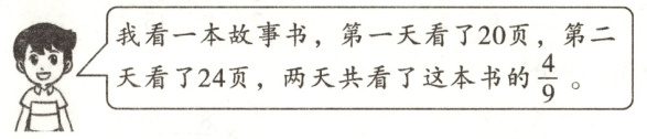 1. 我看一本故事书,第一天看了20页,第二天看了24页,两天共看了这本书的$\frac{4}{9}$。