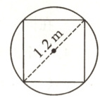 4. 一张可折叠的圆桌的桌面直径是1.2m,折叠后桌面便成了一个正方形(如图),折叠后桌面的面积是多少平方米?折叠部分的面积是多少平方米?(5分)
