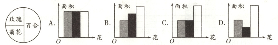 5. 在一个圆形花坛内种了三种花,它们的种植面积所占百分比如下图所示,下面的条形统计图中,图(