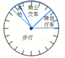 4.步行、骑自行车、乘公交车、其他所对应的圆周角分别225°、45°、72°、18°,圆上每一小格所对应的圆心角是18°,