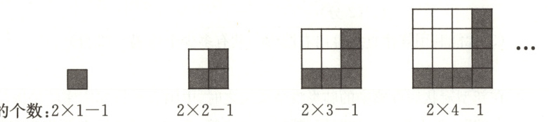 涂色小正方形的个数:$2×1 - 1$ $2×2 - 1$ $2×3 - 1$ $2×4 - 1$