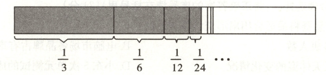 8. 如图,照这样的规律算下去,算式$\frac{1}{3} + \frac{1}{6} + \frac{1}{12} + \frac{1}{24} + ·s$的结果是(