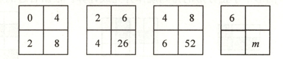 7. 如图的每个正方形中的四个数之间都有相同的规律,根据此规律,计算出$m$的值是(